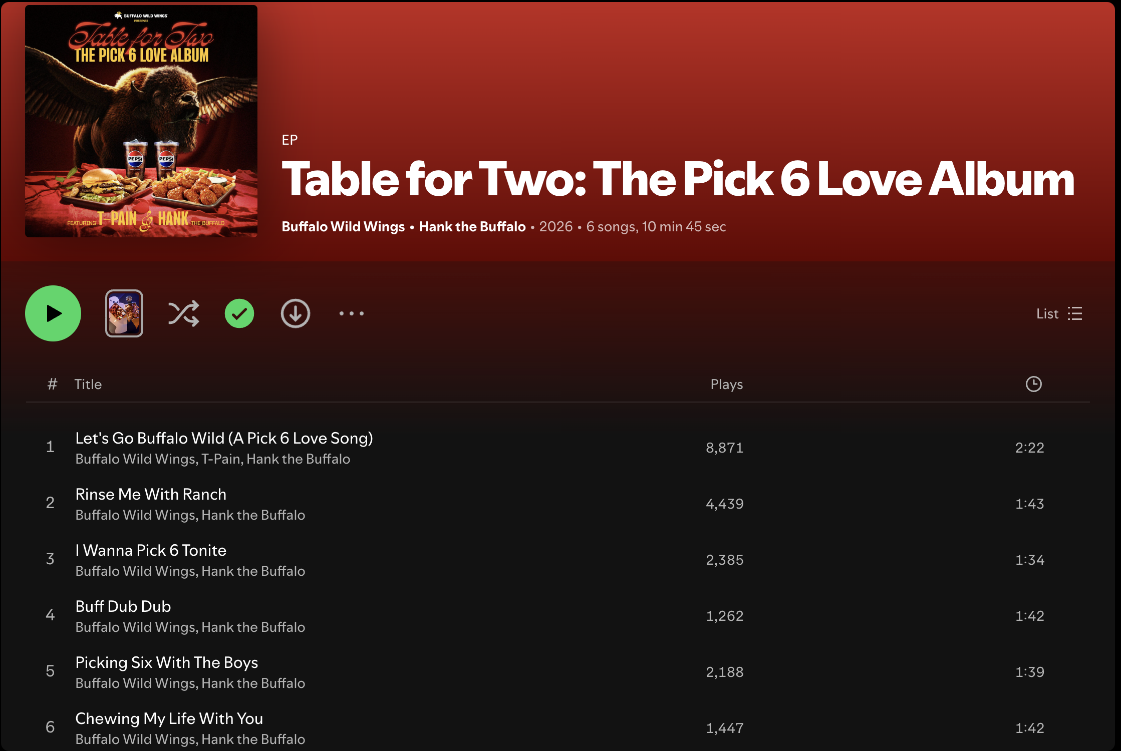 An album for getting saucy, pressed into a sauce-filled vinyl. Sold out in the time it takes you to say “Let’s go Buffalo Wild.”